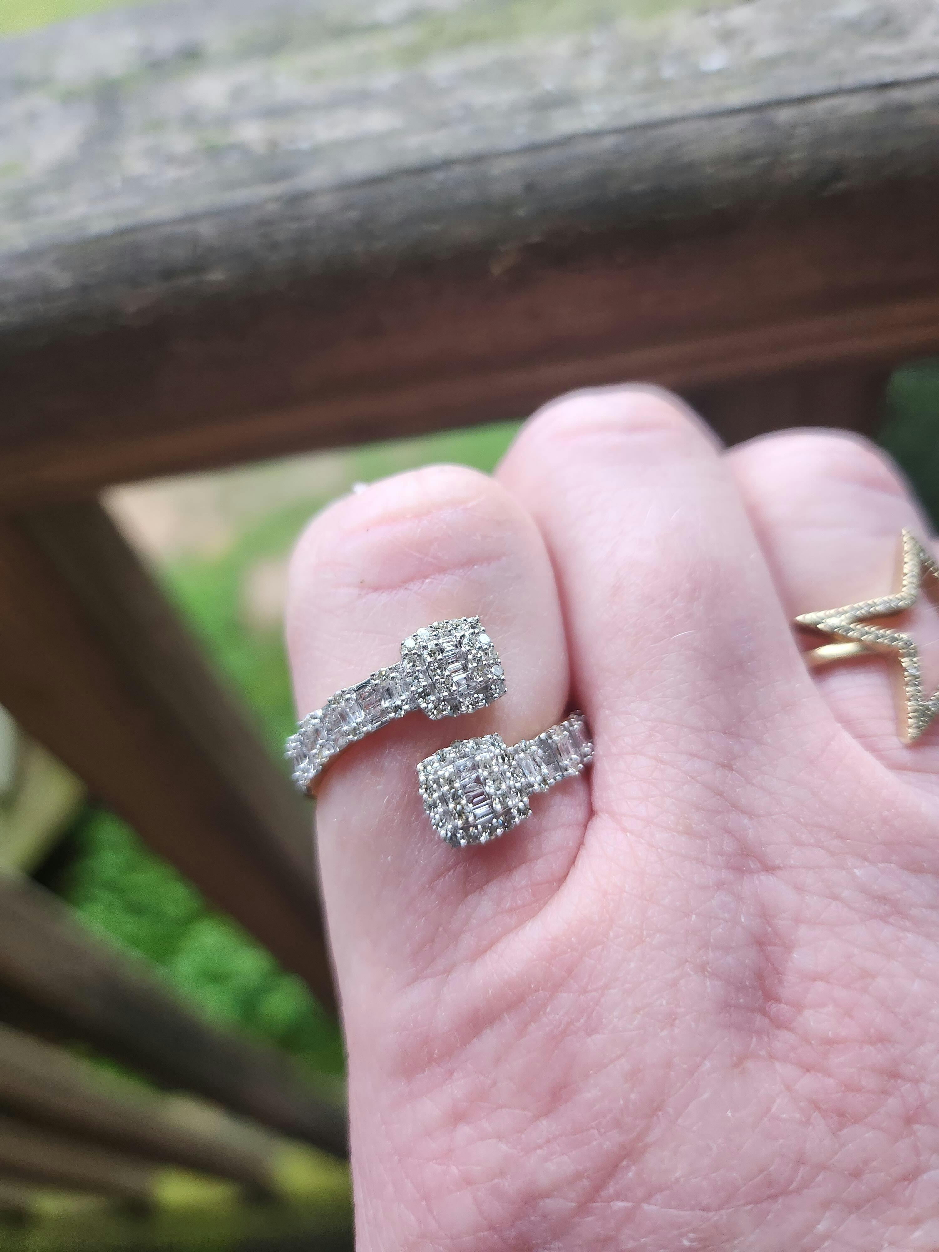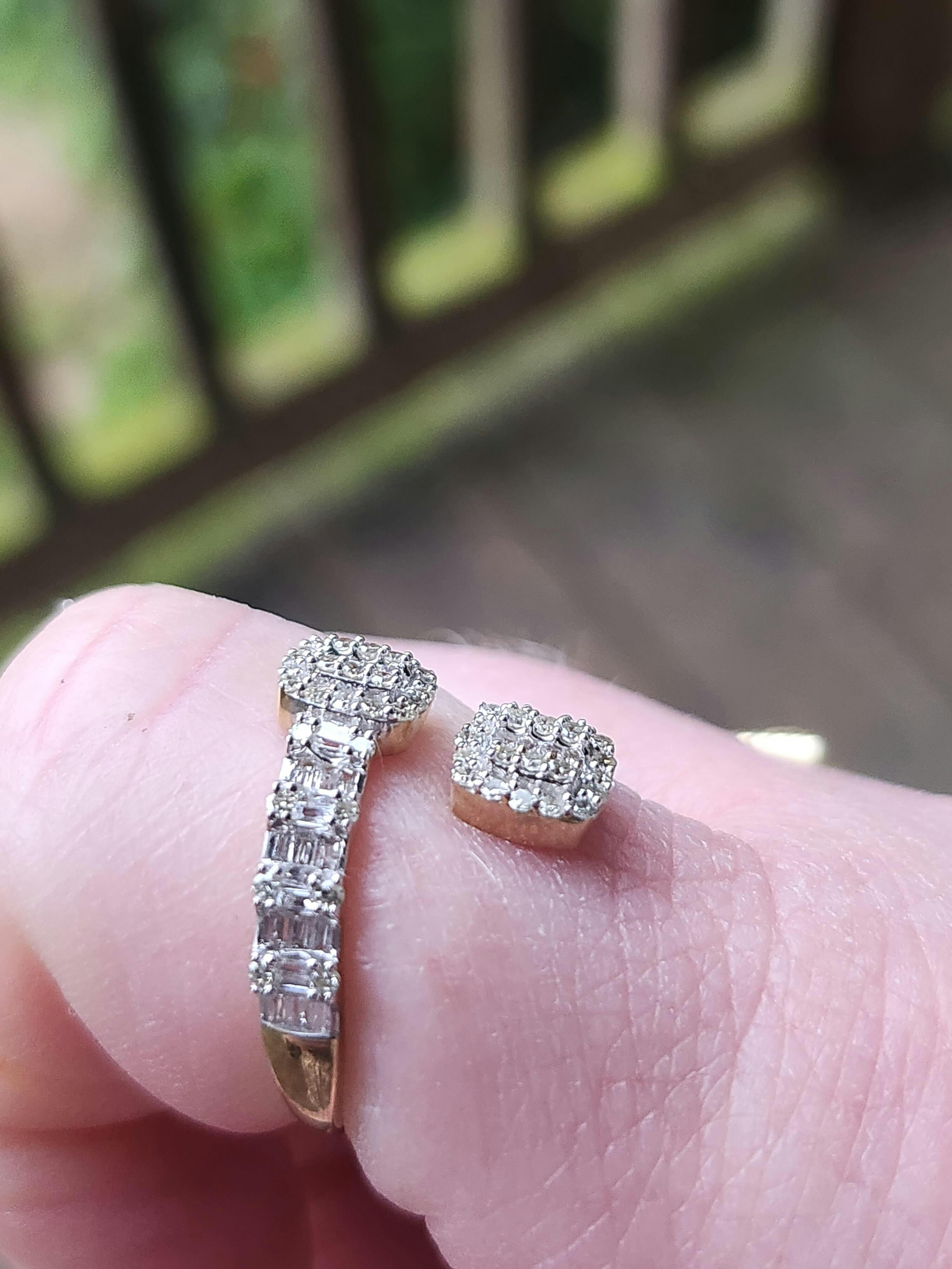 Gold Square Cuff Band Ring 1/2 Cttw Baguette Natural Diamond Womens (2.19 grams)